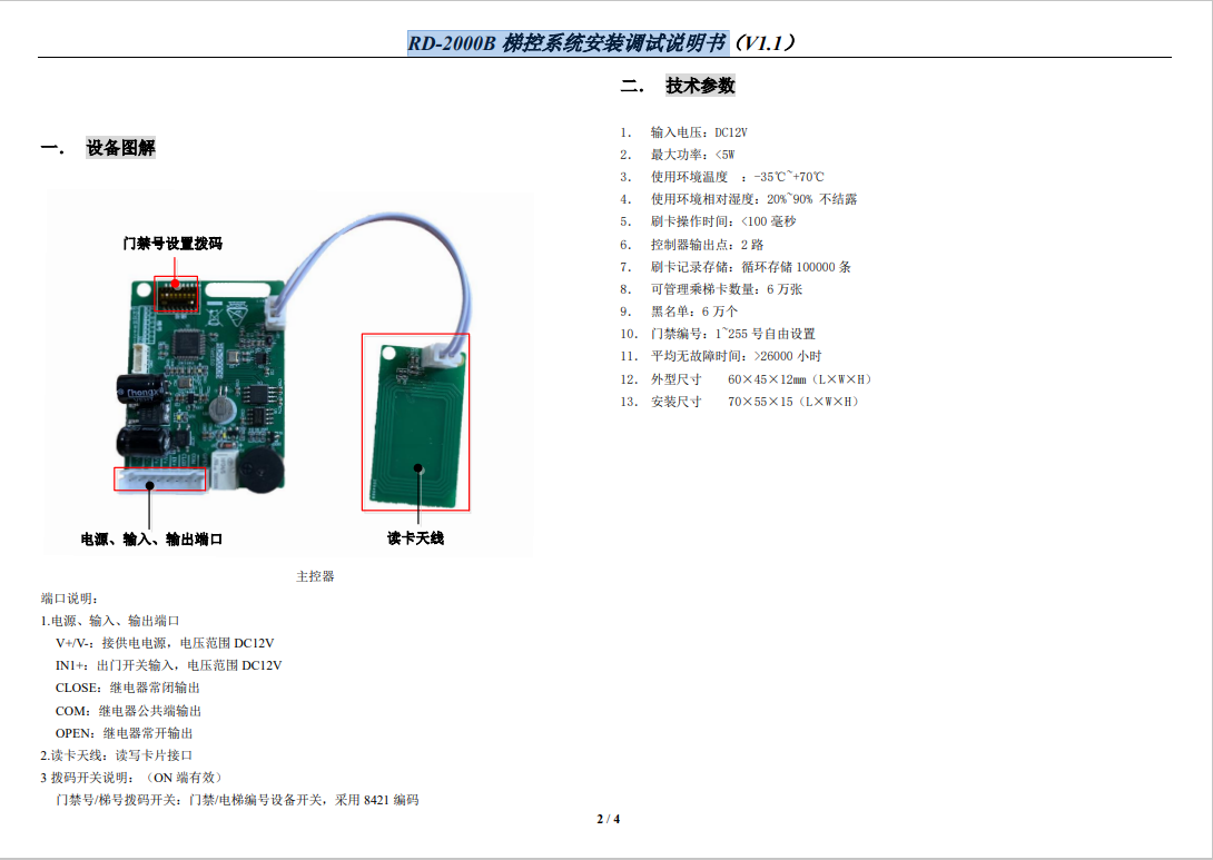 RD-2000A 梯控系統(tǒng)安裝調(diào)試說明書(V1.1)